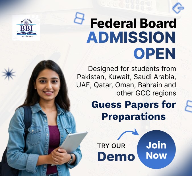Brain Bank Institute was established with a clear mission: to elevate the standard of online education for Federal Board (FBISE) students across Pakistan and international regions, including the GCC. We are committed to delivering quality education that builds strong academic foundations and long-term success.